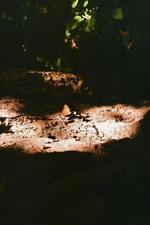 Taken on Fuji 200 with a vintage Yashica 35CC, this is an image of a lone butterfly resting within the light of the forest