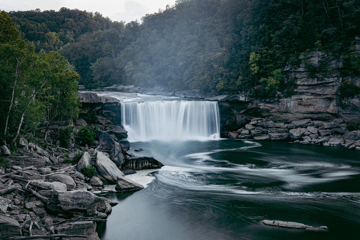 A long exposure of Cumberland Falls. Taken after the sun sank below the mountainous horizon, and the sightseers had taken their leave.